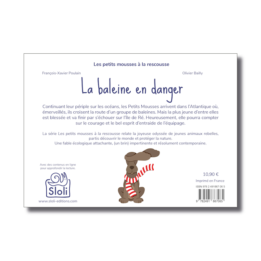 Les petits mousses sont une bande d’animaux rebelles, partis pour un grand voyage, et bien décidés à prendre soin de la nature. Le livre La baleine en danger voit nos petits aventuriers débarquer sur l’île de Ré, après une mystérieuse rencontre avec un baleineau blessé. La joyeuse équipe va devoir faire preuve de solidarité et d’inventivité pour porter secours à cette jeune baleine…